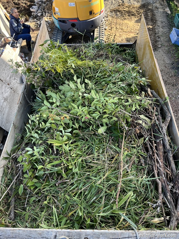 ダンプにコンパネ立てて、枝葉は嵩張らない様にカットしながら積み込んでは踏みつけて。。